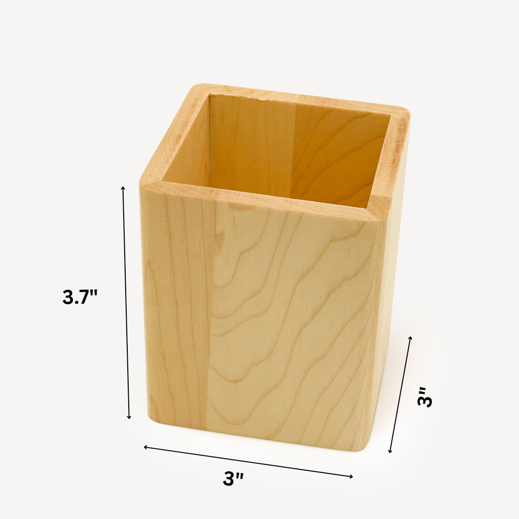 A durable and stylish addition to your workspace. Made from sustainable materials, this eco-friendly pencil holder has ample storage space and a natural wood finish that complements any décor.The square design allows for ample storage space for all your favorite writing utensils, keeping them organized and easily accessible.